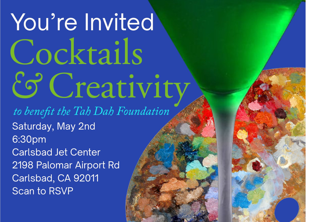 Cocktails & Creativity will take place on Saturday, May 2, 2026 at the Carlsbad Jet Center from 6:30-8:30pm.